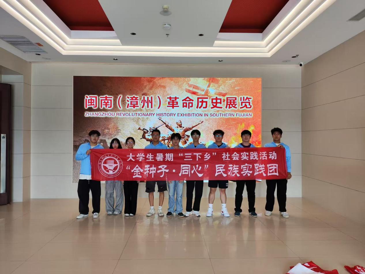 為進(jìn)一步深化民族團(tuán)結(jié)教育,樹立中華民族共同體意識,增進(jìn)各民族間的交往交流交融,推動各民族如同石榴籽般緊密相連,攜手團(tuán)結(jié)奮斗、共同繁榮發(fā)展。2025年8月13日至15日,土木工程學(xué)院“金種子·同心”民族實踐團(tuán)深入漳州革命歷史場館與少數(shù)民族村落開展以“根脈同心聚,家園共鑄魂”為主題的社會實踐。通過探訪閩南(漳州)革命歷史展覽館、龍海區(qū)龍海名人館、閩南文化展示交流中心及云霄縣坡兜畬族村,團(tuán)隊追溯紅色記憶、挖掘民族共融故事,鑄牢中華民族共同體意識,為鄉(xiāng)村振興注入青春力量。