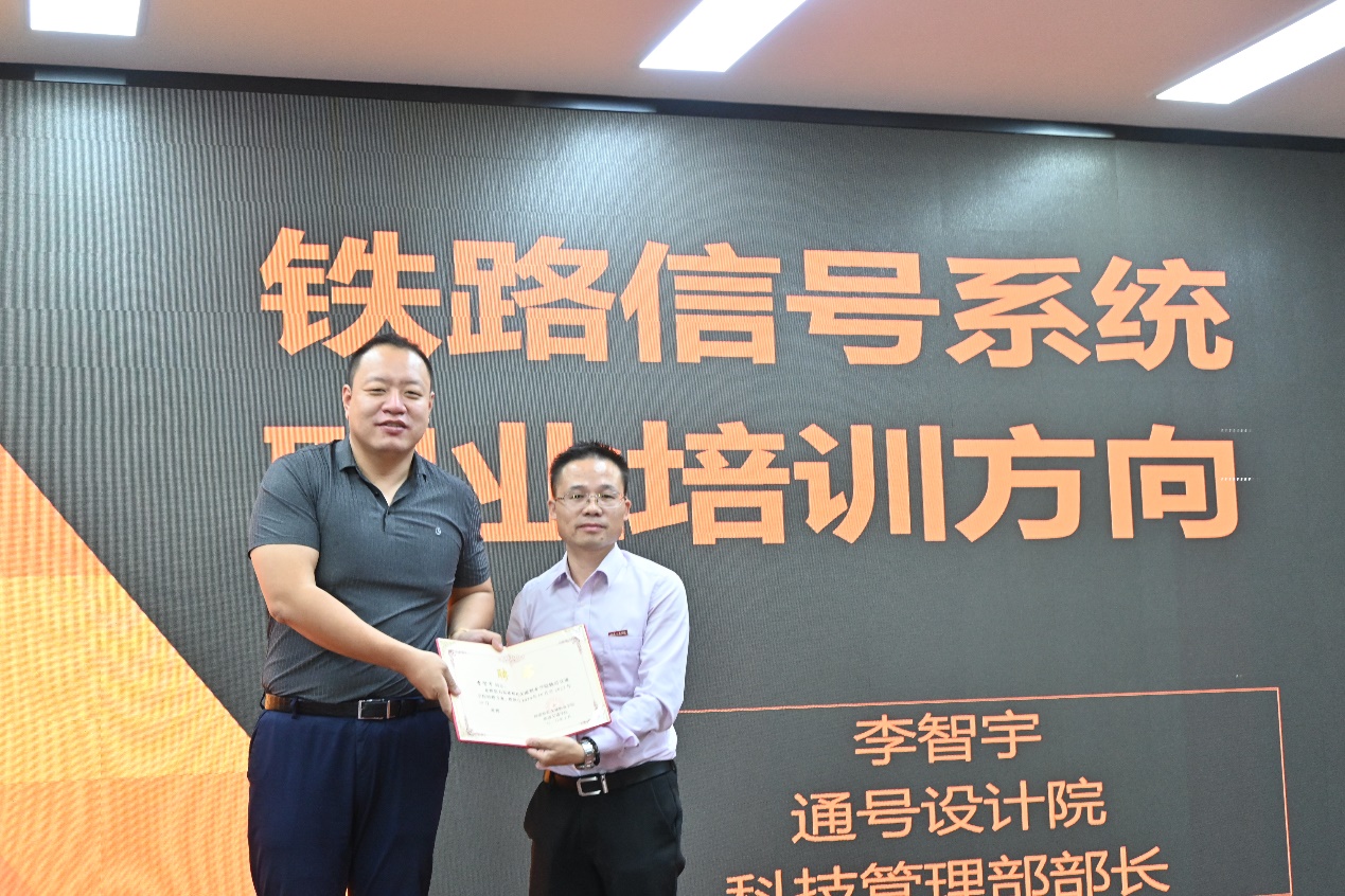 座談會(huì)后,李智宇部長(zhǎng)為軌道學(xué)院的全體師生作了題為《鐵路信號(hào)系統(tǒng)職業(yè)培訓(xùn)方向》的講座。講座中,李智宇部長(zhǎng)分析了國(guó)內(nèi)外軌道交通信號(hào)系統(tǒng)的發(fā)展方向,并針對(duì)信號(hào)系統(tǒng)職業(yè)培訓(xùn)特點(diǎn),在培養(yǎng)專(zhuān)業(yè)人才、教師服務(wù)企業(yè)的切入點(diǎn)等方面提供了良好建議,深入淺出、分析透徹,得到了現(xiàn)場(chǎng)師生的一致好評(píng)。講座現(xiàn)場(chǎng),軌道交通學(xué)院陳天炎院長(zhǎng)為李智宇部長(zhǎng)頒發(fā)了特聘專(zhuān)家聘書(shū),聘請(qǐng)李智宇部長(zhǎng)作為軌道交通學(xué)院的特聘專(zhuān)家指導(dǎo)和參與學(xué)院的專(zhuān)業(yè)建設(shè),深化校企合作,提升人才培養(yǎng)質(zhì)量。