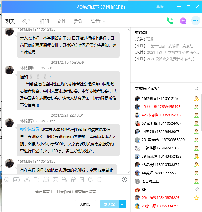 班主任充分利用網(wǎng)絡(luò)平臺(tái),如班級(jí)的QQ群,welink等組織開(kāi)展視頻班會(huì),以防疫宣傳教育為主題,強(qiáng)調(diào)自我防控的重要性,分析了當(dāng)前疫情防控的形勢(shì),傳達(dá)了學(xué)校加強(qiáng)疫情防控的部署和要求,強(qiáng)調(diào)了“停學(xué)不停課”的教學(xué)安排。同學(xué)們積極參與,踴躍發(fā)言,他們有些分享了自己在家學(xué)習(xí)生活的心得,表達(dá)了打贏疫情防控阻擊戰(zhàn)的堅(jiān)強(qiáng)決心。激發(fā)了學(xué)生們的社會(huì)擔(dān)當(dāng),班會(huì)達(dá)到了較好的效果。