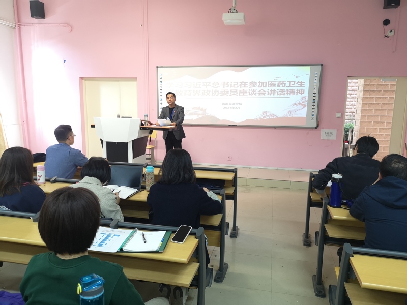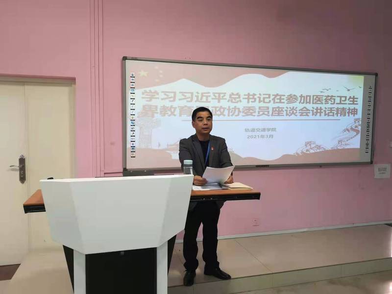 2021年3月24日,軌道交通學(xué)院在北區(qū)二號樓1-3多媒體教室召開學(xué)習(xí)座談會,認(rèn)真學(xué)習(xí)習(xí)近平總書記在參加醫(yī)藥衛(wèi)生界教育界政協(xié)委員座談會講話精神。軌道交通學(xué)院黨政領(lǐng)導(dǎo)班子、全院教職工參加座談會。座談會由孫基書記主持并作學(xué)習(xí)發(fā)言。