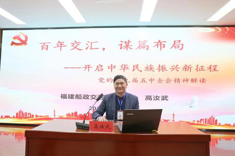 報(bào)告會(huì)上,高汝武副院長(zhǎng)以《百年交匯,謀篇布局---開啟中華民族振興新征程》為題,緊扣黨的十九屆五中全會(huì)主題,從五個(gè)方面系統(tǒng)解讀了黨的十九屆五中全會(huì)精神。一是深刻認(rèn)識(shí)我國(guó)進(jìn)入新發(fā)展階段的重大意義、有利條件和重要特征;二是統(tǒng)籌好發(fā)展和安全兩件大事;三是準(zhǔn)確把握“十四五”時(shí)期我國(guó)發(fā)展的指導(dǎo)方針、主要目標(biāo)和2035年遠(yuǎn)景目標(biāo);四是牢牢把握構(gòu)建新發(fā)展格局的戰(zhàn)略構(gòu)想和重要著力點(diǎn);五是堅(jiān)定不移的貫徹新發(fā)展理念,并結(jié)合實(shí)際對(duì)學(xué)院建設(shè)發(fā)展提出了新思路、新要求。