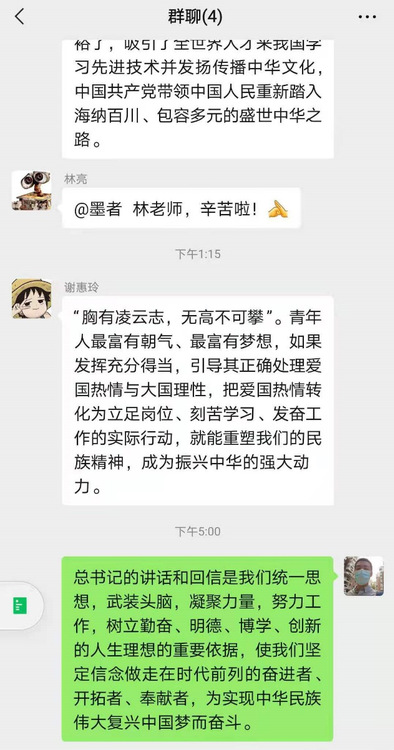 2019級(jí)城市軌道交通運(yùn)營(yíng)管理1班林舒婷:讀習(xí)近平總書(shū)記給北大留學(xué)生的回信,其中印象讓我深刻的是中國(guó)共產(chǎn)黨致力于發(fā)展經(jīng)濟(jì)、消除貧困,積極援助其他國(guó)家抗擊新冠肺炎疫情。中國(guó)共產(chǎn)黨做這些事情,是因?yàn)橹袊?guó)共產(chǎn)黨是為中國(guó)人民謀幸福的政黨,也是為促進(jìn)人類進(jìn)步事業(yè)而奮斗的政黨。也正是中國(guó)共產(chǎn)黨我們祖國(guó)現(xiàn)如今繁榮昌盛,我們作為中國(guó)的大學(xué)生要跟黨走,做有利于人民的事,現(xiàn)在更是要好好學(xué)習(xí)天天向上!