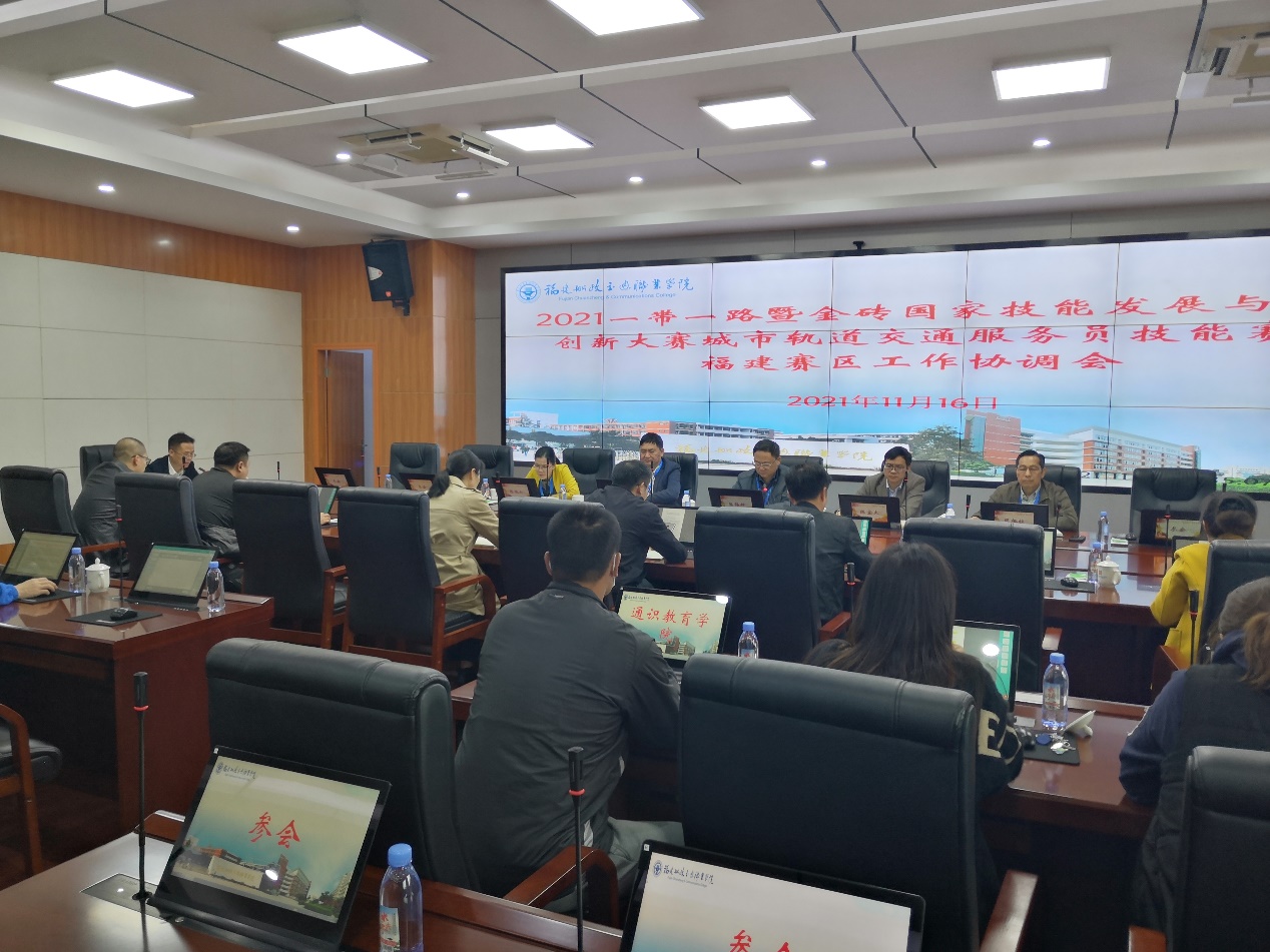 2021年11月16日,2021一帶一路暨金磚國家技能發(fā)展與技術(shù)創(chuàng)新大賽之城市軌道交通服務(wù)員技能賽項(xiàng)福建賽區(qū)工作協(xié)調(diào)會在福建船政交通學(xué)院順利召開。會議由賽項(xiàng)執(zhí)委會副主任、福建船政交通職業(yè)學(xué)院院長陳錦輝主持,福建賽區(qū)籌備領(lǐng)導(dǎo)小組、賽項(xiàng)負(fù)責(zé)人、承辦校代表等參加此次會議。