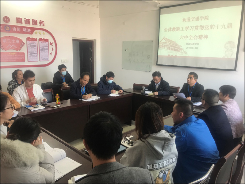 軌道交通學(xué)院院長陳天炎:回望來時路,看清腳下路,才能更好地堅定前行。黨的十九屆六中全會的召開是對黨百年取得的重大成就和歷史經(jīng)驗進(jìn)行系統(tǒng)總結(jié),《決議》引發(fā)我院黨員干部的極大共鳴,激蕩人心催人奮進(jìn)。我們要更加堅定的貫徹黨的教育方針,無愧使命擔(dān)當(dāng),不負(fù)偉大理想,搶抓職業(yè)教育機(jī)遇與挑戰(zhàn),踐行好立德樹人初心和為黨育人、為國育才使命,進(jìn)一步發(fā)揮學(xué)院專業(yè)、人才和資源優(yōu)勢,在加快職業(yè)教育現(xiàn)代化建設(shè)的征程中書寫更加出彩的篇章。