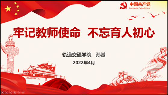 為進(jìn)一步推動(dòng)常態(tài)化落實(shí)落細(xì)師德師風(fēng)建設(shè),軌道交通學(xué)院各黨支部在四月份開展“強(qiáng)師德 鑄師魂”、“爭(zhēng)當(dāng)'四有’好教師”、“汲取師德失范教訓(xùn)強(qiáng)化師德師風(fēng)建設(shè)”、“強(qiáng)師德 正師風(fēng) 鑄師魂”等為主題的黨日活動(dòng)。黨員們紛紛表示,通過師德師風(fēng)黨日活動(dòng),牢固樹立了師德師風(fēng)底線意識(shí),切實(shí)增強(qiáng)了遵守教師職業(yè)行為十項(xiàng)準(zhǔn)則的思想自覺和行動(dòng)自覺,要更加以高標(biāo)準(zhǔn)的態(tài)度完成教師在日常教育教學(xué)活動(dòng)中立德樹人、培養(yǎng)新時(shí)代社會(huì)主義建設(shè)者和接班人的教育教學(xué)目標(biāo),做黨和人民滿意的“四有”好老師!