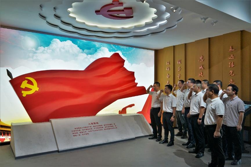 在黨日活動中,雙方黨員共同參觀了吳孟超院士館。在講解員的帶領(lǐng)下,黨員們回顧了吳孟超院士勵志報國、勇攀高峰、大醫(yī)仁心、甘為人梯、回報鄉(xiāng)梓的光輝歷程,深刻體會到吳孟超院士“愛黨、愛國、愛民”的“三愛”情懷,和“勇闖禁區(qū)、勇于創(chuàng)新、勇往直前、勇攀高峰”的“四勇”精神。黨員們面對黨旗重溫入黨誓詞,激昂的宣誓聲傳達出身為共產(chǎn)黨員的責任感和使命感,更加堅定了不忘初心再出發(fā)、牢記使命勇?lián)數(shù)男判暮蜎Q心。
