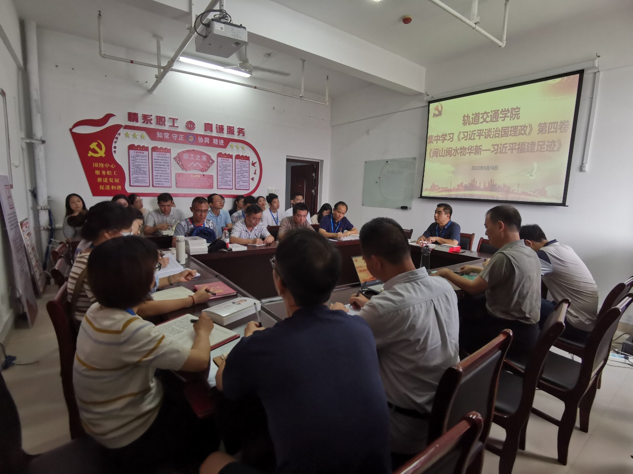 2022年8月16日上午,軌道交通學(xué)院在第一會(huì)議室舉行專題學(xué)習(xí)會(huì),采取自學(xué)、研討、觀看視頻等相結(jié)合的方式集中學(xué)習(xí)《習(xí)近平談治國(guó)理政》第四卷和《閩山閩水物華新——習(xí)近平福建足跡》。軌道交通學(xué)院全院教職工參加學(xué)習(xí)會(huì),會(huì)議由學(xué)院黨總支書記孫基主持。