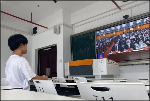 學(xué)生在教室觀看直播