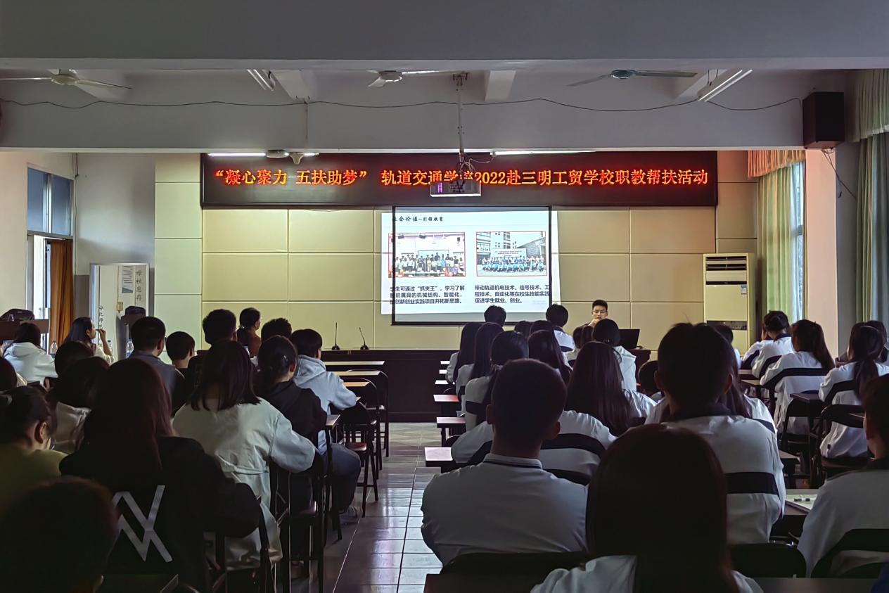 我院陳天炎院長向師生們詳細介紹了世界軌道交通發(fā)展的歷程和我國城市軌道交通發(fā)展現(xiàn)狀,并向三明工貿(mào)的同學們詳細講解了我院軌道交通相關學科的專業(yè)設置情況,激勵同學們努力學習,為進入我院完成后續(xù)專業(yè)課程學習打好基礎。