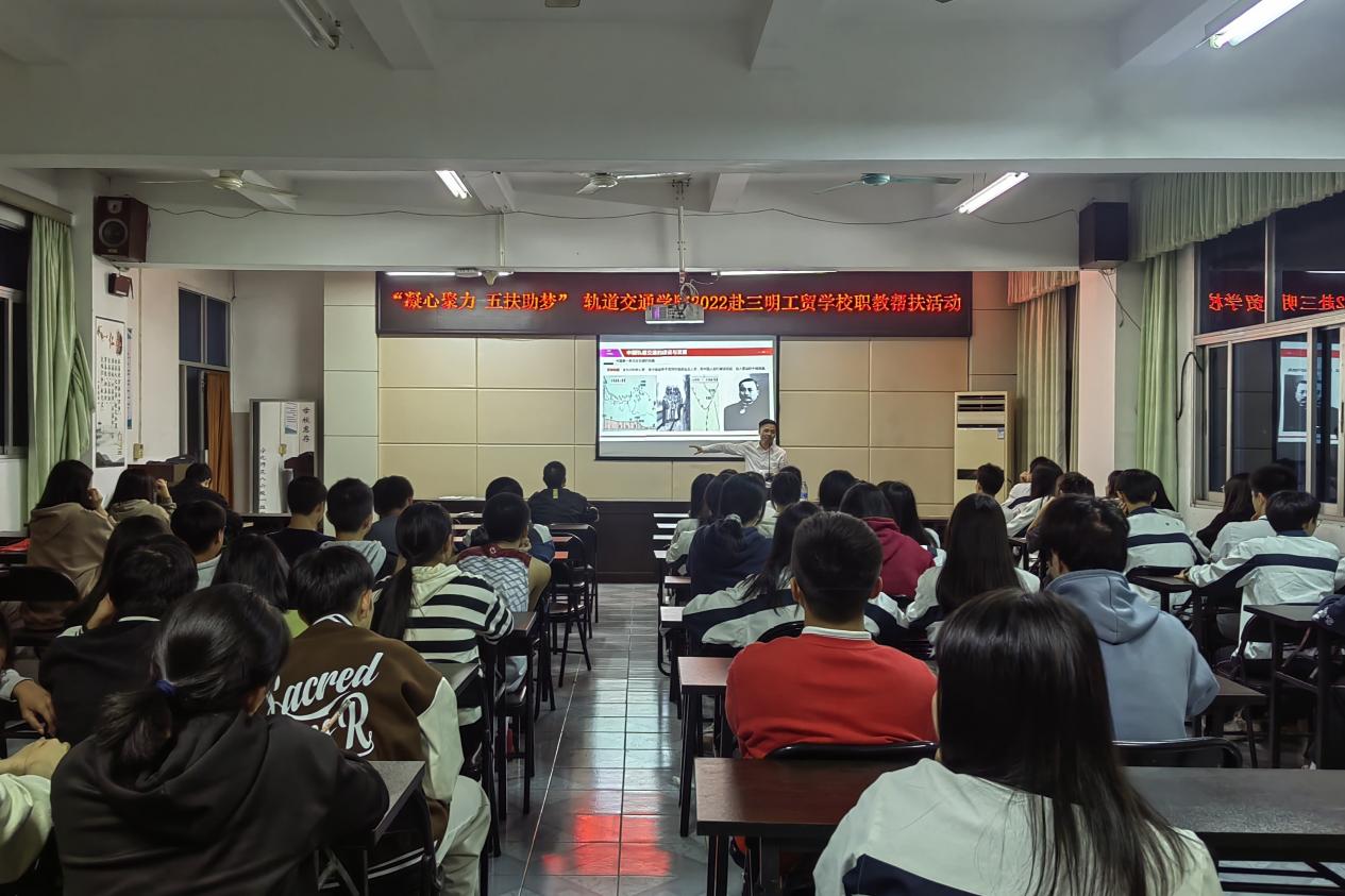 2022年10月20日,在黨的二十大勝利召開之際,福建船政交通職業(yè)學院軌道交通學院陳天炎院長率教師、學生代表一行,赴福建省三明工貿(mào)學校開展了多場別開生面的職教幫扶活動。開展職教幫扶活動不僅是“雙高”建設的重點任務,也是進一步加深中、高職院校交流合作,發(fā)揮雙方院校在辦學理念和專業(yè)特色上的優(yōu)勢,培養(yǎng)高素質(zhì)技術技能人才的重要舉措。
