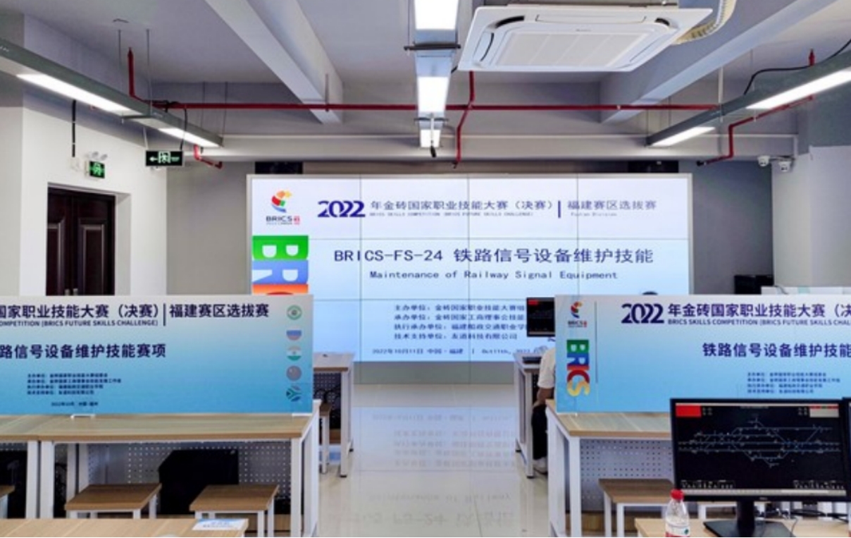 10月11日,在金磚國(guó)家職業(yè)技能大賽組委會(huì)、金磚國(guó)家工商理事會(huì)技能發(fā)展工作組和賽項(xiàng)技術(shù)支持單位友道科技有限公司的大力支持下,2022金磚國(guó)家職業(yè)技能大賽(決賽)福建省選拔賽——鐵路信號(hào)設(shè)備維護(hù)技能大賽通過(guò)“線上+線下”的方式在我校順利舉辦。來(lái)自福建船政交通職業(yè)學(xué)院、廈門(mén)城市職業(yè)學(xué)院、福州職業(yè)技術(shù)學(xué)院、福建工業(yè)學(xué)校等6所院校的8支參賽隊(duì)伍參與了大賽角逐。我校軌道交通學(xué)院代表隊(duì)榮獲第一名的好成績(jī),成功晉級(jí)國(guó)賽。