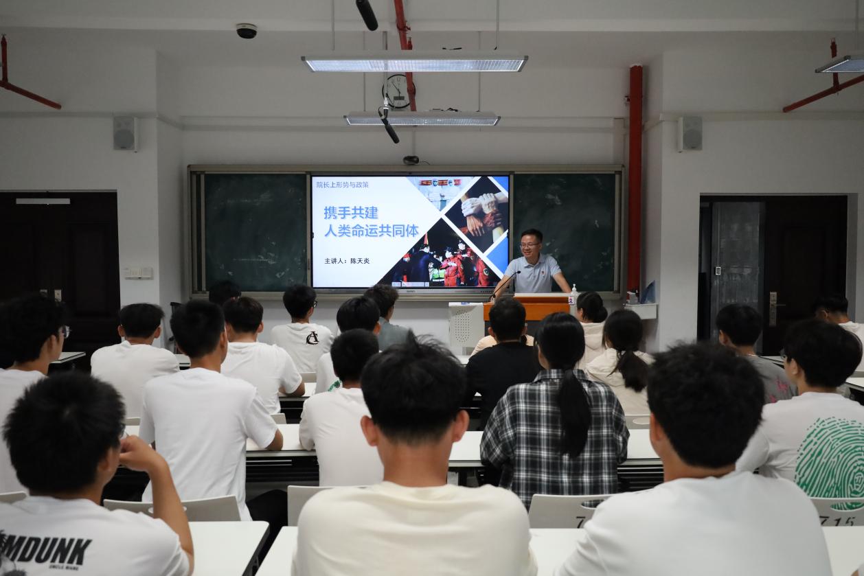 為加強(qiáng)大學(xué)生對全球發(fā)展倡議、全球安全倡議以及構(gòu)建人類命運(yùn)共同體的了解,2022年9月20日,軌道交通學(xué)院院長陳天炎以“攜手共建人類命運(yùn)共同體”為軌道交通學(xué)院學(xué)生干部上形勢與政策課。