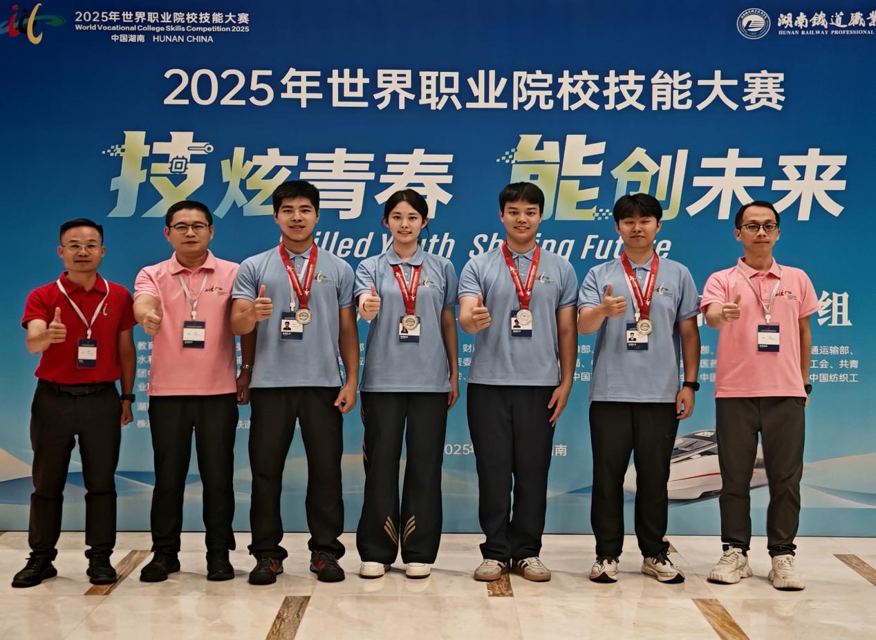 2025年8月27日至31日,2025年世界職業(yè)院校技能大賽軌道交通運輸賽道總決賽爭奪賽在湖南省株洲市成功舉辦。我院軌道交通學(xué)院學(xué)子彭溢、鄭家鎮(zhèn)、李瑋杰、王希盈四位同學(xué)組成代表隊,憑借扎實的專業(yè)功底、默契的團隊協(xié)作和頑強的拼搏精神,最終從全國155支隊伍中成功突圍,斬獲本次大賽銀獎,為學(xué)院贏得了榮譽。