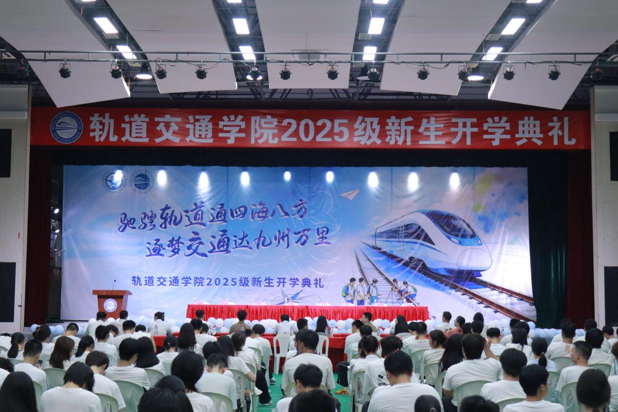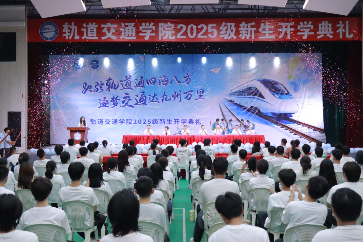 “希望同學們在大學期間,結交兩個‘摯友’——一個是操場,一個是圖書館。”軌道交通學院院長陳天炎在致辭中,用親切的比喻為新生指引方向。他鼓勵同學們走出宿舍,在操場揮灑汗水、強健體魄;走進圖書館,在書頁間汲取知識、開闊眼界,以健康的身心與扎實的學識,為未來的軌道事業(yè)打下堅實基礎。