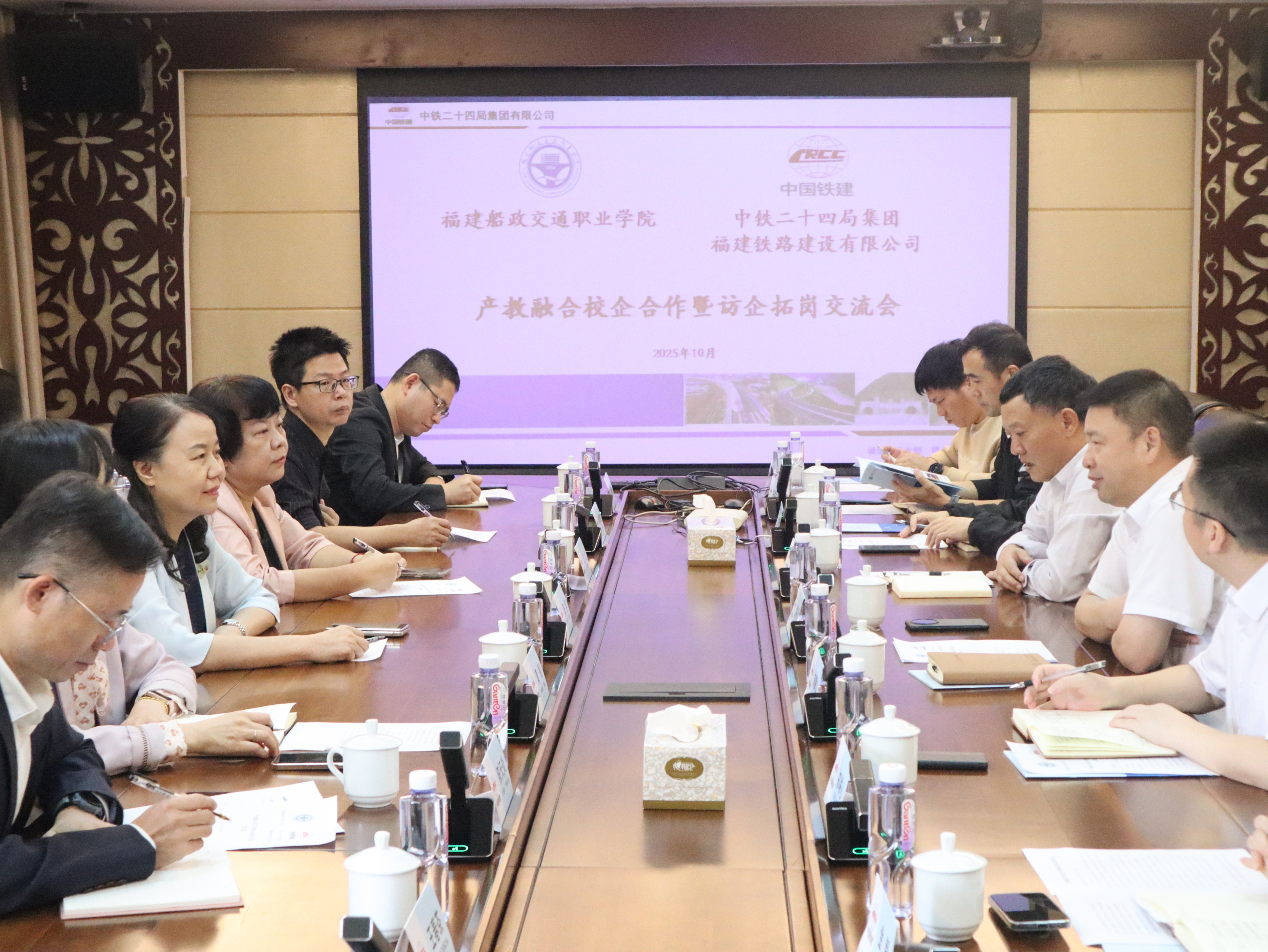 中鐵二十四局福建公司溫裕洪書記對陳群校長一行的到來表示熱烈歡迎,對學(xué)院特色發(fā)展、質(zhì)量辦學(xué),培養(yǎng)德技并修、注重實(shí)踐的人才取得的成效予以高度評價(jià)。校企雙方就深化產(chǎn)教融合、科教融匯,加強(qiáng)專業(yè)建設(shè)、做優(yōu)人才培養(yǎng)、推進(jìn)學(xué)生就業(yè),開展人員培訓(xùn)、黨建共建等深入交流。