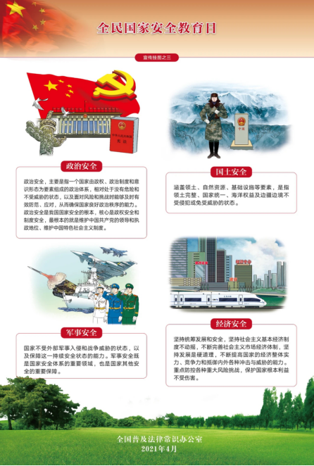 什么是全民國家安全教育日? 全民國家安全教育日(National Security Education Day),是為了增強(qiáng)全民國家安全意識,維護(hù)國家安全而設(shè)立的節(jié)日。2015年7月1日,全國人大常委會通過的《中華人民共和國國家安全法》第十四條規(guī)定,每年4月15日為全民國家安全教育日。 什么是國家安全? 根據(jù)《國家安全法》第二條規(guī)定: 國家安全是指國家政權(quán)、主權(quán)、統(tǒng)一和領(lǐng)土完整、人民福祉、經(jīng)濟(jì)社會可持續(xù)發(fā)展和國家其他重大利益相對處于沒有危險(xiǎn)和不受內(nèi)外威脅的狀態(tài),以及保障持續(xù)安全狀態(tài)的能力。 什么是堅(jiān)持總體國家安全觀 2014年4月15日,習(xí)近平總書記在中央國家安全委員會第一次全體會議上提出,堅(jiān)持總體國家安全觀,走出一條中國特色國家安全道路。首次提出總體國家安全觀重大戰(zhàn)略思想。這是以習(xí)近平同志為核心的黨中央對國家安全理論的重大創(chuàng)新,是新形勢下維護(hù)和塑造中國特色國家安全的行動(dòng)指南,具有重大的理論意義、時(shí)代意義、實(shí)踐意義。 總體國家安全觀的五大要素 1.以人民安全為宗旨 2.以政治安全為根本 3.以經(jīng)濟(jì)安全為基礎(chǔ) 4.以軍事、文化、社會安全為保障 5.以促進(jìn)國際安全為依託 貫徹落實(shí)總體國家安全觀,做到十個(gè)重視(五對關(guān)系) 1.既重視外部安全、又重視內(nèi)部安全 2.既重視國土安全、又重視國民安全 3.既重視傳統(tǒng)安全、又重視非傳統(tǒng)安全 4.既重視發(fā)展問題、又重視安全問題 5.既重視自身安全、又重視共同安全