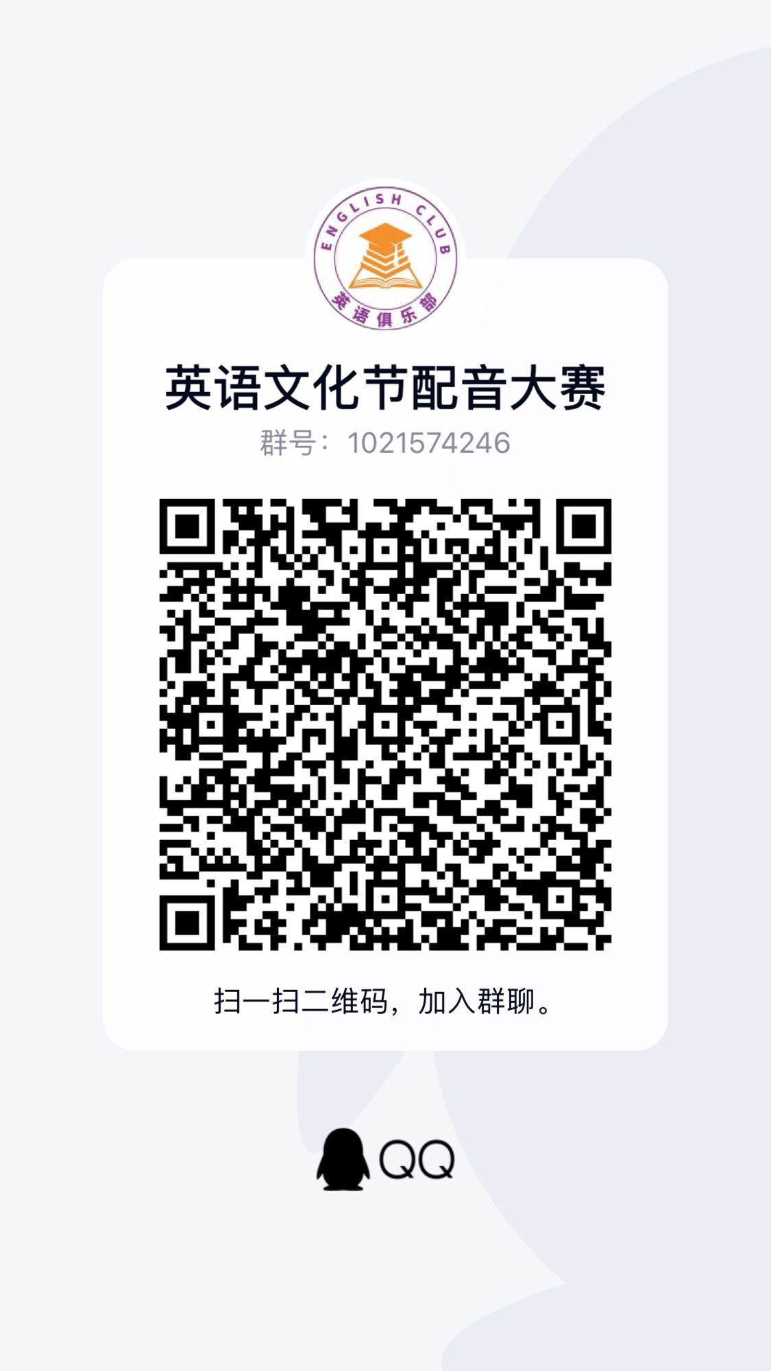掃碼加入Q群并在三全育人平臺(tái)搜索關(guān)鍵詞“英語文化節(jié)”找到相應(yīng)活動(dòng)進(jìn)行報(bào)名