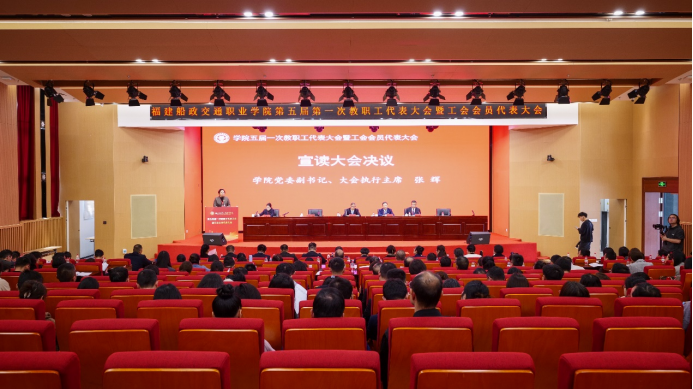 3月13日上午,福建船政交通職業(yè)學(xué)院第五屆第一次教職工代表大會暨工會會員代表大會在福船園藝新樓331報告廳順利舉行。本次會議是在學(xué)院深入學(xué)習(xí)宣傳貫徹全國“兩會”精神和全國、全省教育大會精神,“十四五”規(guī)劃全面收官、“十五五”規(guī)劃謀篇布局,學(xué)院申創(chuàng)第二期“雙高計劃”建設(shè)和深化綜合改革的關(guān)鍵時期召開的一次重要會議。福建省教科文衛(wèi)體工會工委主任郭立新、副主任陽先輝,學(xué)院黨委書記陳宜大,黨委副書記、院長陳錦輝,黨委副書記張輝,黨委委員、副院長陳艷紅,副院長陳常暉出席會議,正式代表、列席代表共200多人參加會議。會議由學(xué)院黨委委員、副院長陳艷紅主持。