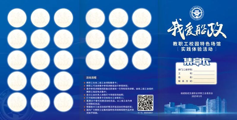 活動(dòng)以“創(chuàng)新船政、質(zhì)量船政、文化船政、開放船政”理念為牽總,學(xué)院校史館、三全育人館、嚴(yán)復(fù)史績(jī)館、黨建思政船政文化研學(xué)中心“三館一中心”為組團(tuán),青年服務(wù)中心、“一站式”學(xué)生服務(wù)中心、職工之家“兩區(qū)三陣地”為輻射,航海技術(shù)、安全技術(shù)與管理兩大“雙高”專業(yè)群為龍頭,交通土建、汽車運(yùn)用、通用航空、軌道交通、交通運(yùn)輸服務(wù)、機(jī)械與智能制造、信息技術(shù)與智慧交通為支撐的9大現(xiàn)代綜合立體交通專業(yè)集群16個(gè)特色實(shí)驗(yàn)實(shí)訓(xùn)基地為延伸,采用集章打卡互動(dòng)形式,通過沉浸式、體驗(yàn)式參觀方式,教學(xué)相長(zhǎng)、組團(tuán)互學(xué)研學(xué)實(shí)踐,充分活化學(xué)院“愛國(guó)強(qiáng)技、產(chǎn)學(xué)一體、精益求精、趨變求新”職教資源和辦學(xué)特色,充分激發(fā)學(xué)院教職工的自豪感、幸福感和獲得感,團(tuán)結(jié)引領(lǐng)廣大教職員工與學(xué)院發(fā)展同頻共振,與偉大時(shí)代進(jìn)步同向同行。