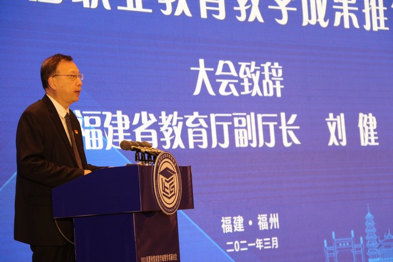 福建省委教育工委委員、教育廳黨組成員、副廳長(正廳長級)劉健在會上致辭。他代表福建省委教育工委、教育廳向大會的召開表示祝賀,對長期以來關(guān)心支持福建教育的各界人士表示誠摯的感謝。他向與會代表介紹了福建省情和職業(yè)教育事業(yè)發(fā)展情況,他說,習近平總書記擔任福州市委書記期間,曾兼任閩江職業(yè)大學校長,提出的“不求最大,但求最優(yōu),但求適應社會發(fā)展需要”的辦學理念,時至今日仍是辦好職業(yè)院校、增強職業(yè)教育適用性的重要法寶。習近平總書記強調(diào)“福建沒有理由不把教育辦好”,多次對福建教育改革發(fā)展作出重要批示指示,福建省委、省政府始終把職業(yè)教育擺在優(yōu)先發(fā)展位置。福建是習近平職業(yè)教育重要論述的孕育地和重要實踐地,總書記為福建職業(yè)教育擘畫的藍圖,歷經(jīng)幾代職業(yè)教育人的辛勤耕耘,經(jīng)歷了萌芽、開花、結(jié)果的幸福歷程。特別是進入新時代以來,為適應地方經(jīng)濟社會發(fā)展,福建全力加推職業(yè)教育快速持續(xù)發(fā)展,綜合實力不斷提升。全省職業(yè)院校聚焦新發(fā)展階段、貫徹新發(fā)展理念、主動融入并積極服務新發(fā)展格局,涌現(xiàn)了一大批教育教學成果。他希望福建各高職高專院校學習借鑒兄弟省區(qū)市的經(jīng)驗做法,將會議的主要精神、創(chuàng)新經(jīng)驗和做法運用到教育教學改革的具體實踐中去,在改革實踐中不斷提升辦學水平和人才培養(yǎng)質(zhì)量,努力開創(chuàng)我省職業(yè)教育改革發(fā)展新局面,為全方位推動高質(zhì)量發(fā)展超越和新時代新福建建設做出積極的貢獻。