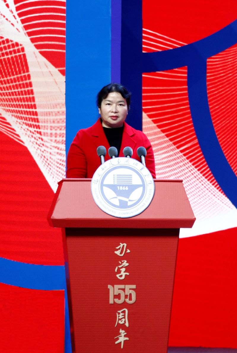 教師代表林穎老師為學(xué)院送上祝福,分享了個人與船政的緣分,并號召師生齊心,秉承“求是自強,求實創(chuàng)新”,以永不懈怠的奮斗精神,為學(xué)院高質(zhì)量發(fā)展作出新的更大的貢獻。