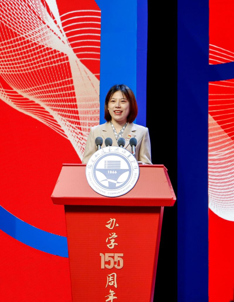 學(xué)生代表王鈺瑩同學(xué)發(fā)言中表達了對母校的祝福與感謝,并與全體在校生共勉,爭取早日實現(xiàn)“今天我以船政為榮,明日船政以我為榮”。