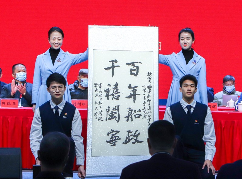 學(xué)院黨委書記張海明在講話中回顧了自1866年船政創(chuàng)辦以來,福建船政交通教育歷經(jīng)兄弟四校發(fā)展到合為一統(tǒng)升格辦學(xué)在各階段取得的歷史成就,凝練了“自強不息、堅守理想,敢拼會贏、融通并進,精益求精、密益求密”24字船政交通精神。他指出,今年是黨和國家歷史上具有里程碑意義的一年,要感召偉大建黨精神的豐富內(nèi)涵,重溫歷史,緬懷一代一代船政交通人付出的艱辛探索,踐行勞模精神、勞動精神、工匠精神,追尋船政交通人共同的精神,共同的文化,共同的斗志,共同的方向。站在兩個一百年的交匯期,他以船政交通接力人的身份啟動和號召廣大師生要胸懷“國之大者”,高舉旗幟;要強化“雙高引領(lǐng)”,樹職教名片;要矢志“立德樹人”,育大國工匠,全面開啟福建船政交通職業(yè)學(xué)院高質(zhì)量發(fā)展的新篇章,以優(yōu)異成績迎接黨的二十大召開!