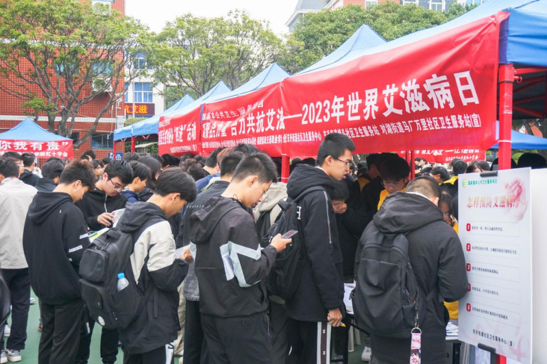 校院兩級紅會組織開展防艾簽名墻、紅絲帶DIY、祈愿手繪等創(chuàng)意游園會,以生動趣味的方式科普、宣傳防艾知識。東升街道衛(wèi)生院現(xiàn)場設(shè)置義診咨詢區(qū),家庭醫(yī)生簽約等宣傳展位,為同學(xué)們提供便民服務(wù)。