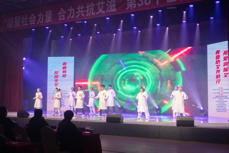 活動現(xiàn)場,防艾藝術(shù)展演在學(xué)院主會場隆重舉行,文藝展演內(nèi)容豐富、生動有趣,獲得現(xiàn)場師生們陣陣歡呼和掌聲。防艾藝術(shù)展演展示了近年改編的具有深刻教育意義的系列防艾節(jié)目,我院學(xué)生社團、校藝術(shù)團等帶來精彩節(jié)目。