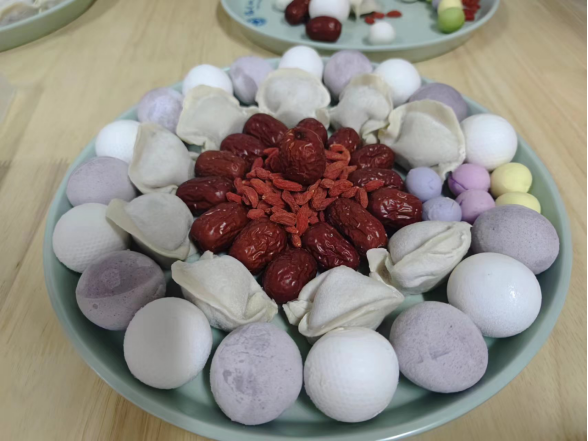 教師們和同學(xué)們圍坐一起聊冬至習(xí)俗、品嘗著熱氣騰騰的湯圓、餡多皮薄的餃子,臉上洋溢著幸福的微笑。