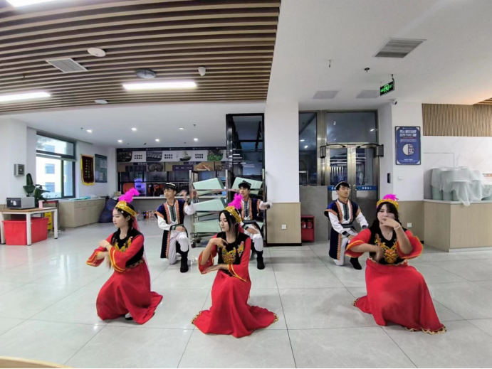 新疆籍學(xué)生身穿民族服飾,一首熱情奔放的維吾爾族舞蹈《花園》拉開了活動(dòng)的序幕。優(yōu)美的舞姿充分展現(xiàn)了民族特色文化,與臺(tái)下師生的互動(dòng)更是將全場(chǎng)的氣氛帶至高潮。