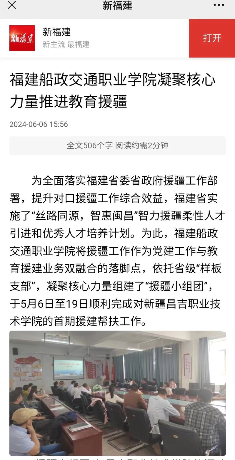 據(jù)介紹,福建船政交通職業(yè)學院“援疆小組團”后續(xù)將協(xié)助昌吉職院能源動力工程分院建設新能源汽車專業(yè)群、組建產(chǎn)業(yè)學院、強化校企合作等,致力把援疆工作做細做實做出成效。