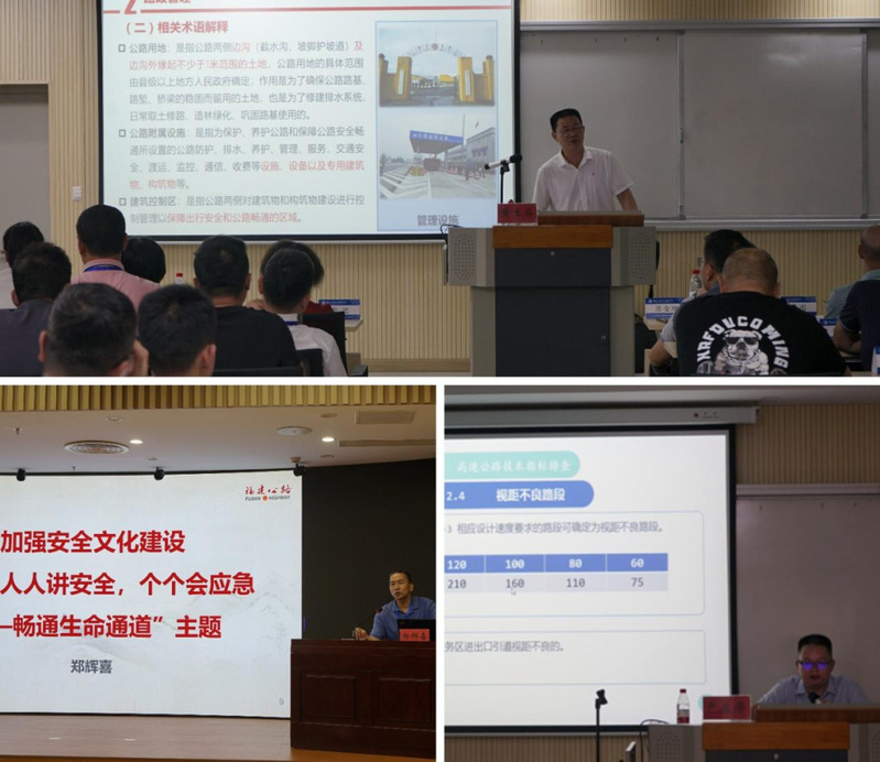 此次培訓(xùn)內(nèi)容豐富,形式多樣。邀請到了福建省交通運輸廳綜合執(zhí)法監(jiān)督局四級調(diào)研員黃生存、原省公路事業(yè)發(fā)展中心副主任鄭輝喜、福建省應(yīng)急管理專家嚴益芳為學(xué)員們做專題講座。內(nèi)容涵蓋福建省路政管理(執(zhí)法)體制介紹、執(zhí)法安全防護、高速公路安全隱患排查等方面。除專題講座外,還前往福建省高速公路路網(wǎng)監(jiān)控指揮中心、青云山服務(wù)區(qū)等單位進行現(xiàn)場教學(xué)及業(yè)務(wù)交流。
