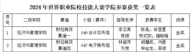 “技炫青春 能創(chuàng)未來”,2024年世界職業(yè)院校技能大賽落下帷幕。本次大賽由教育部牽頭,聯(lián)合35個國家相關(guān)部委及事業(yè)組織共同主辦,共設(shè)置了42個賽道,總決賽分爭奪賽、排位賽、冠軍總決賽三個階段進行,其中爭奪賽在全國各地32個賽區(qū)舉行。我院派出由90名學(xué)生、46名指導(dǎo)老師組成的23支隊伍,代表福建省參賽。