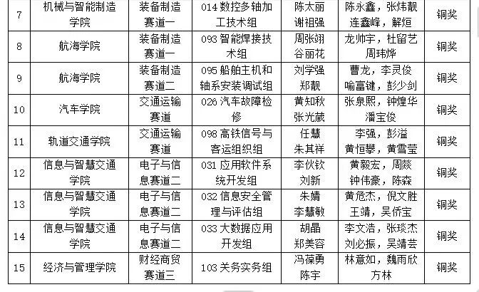 在激烈的競賽中,我院學(xué)子沉著冷靜,發(fā)揮出色,勇獲佳績。在會計實務(wù)、電子商務(wù)2個賽項榮獲金獎,在生產(chǎn)事故應(yīng)急救援、智能飛行器應(yīng)用技術(shù)、智能網(wǎng)聯(lián)汽車技術(shù)、機器人系統(tǒng)集成應(yīng)用技術(shù)4個賽項榮獲銀獎,在數(shù)控多軸加工技術(shù)、智能焊接技術(shù)、船舶主機和軸系安裝調(diào)試、汽車故障檢修、高鐵信號與客運組織、應(yīng)用軟件系統(tǒng)開發(fā)、信息安全管理與評估、大數(shù)據(jù)應(yīng)用開發(fā)、關(guān)務(wù)實務(wù)9個賽項榮獲銅獎,獲獎數(shù)量位居全省第一。同時受我院邀請,由烏干達(dá)工程機械技能培訓(xùn)中心組成的國際代表隊,在我院汽車學(xué)院黃林火老師的指導(dǎo)下,榮獲交通運輸賽道起動系統(tǒng)故障排查小組銅獎。