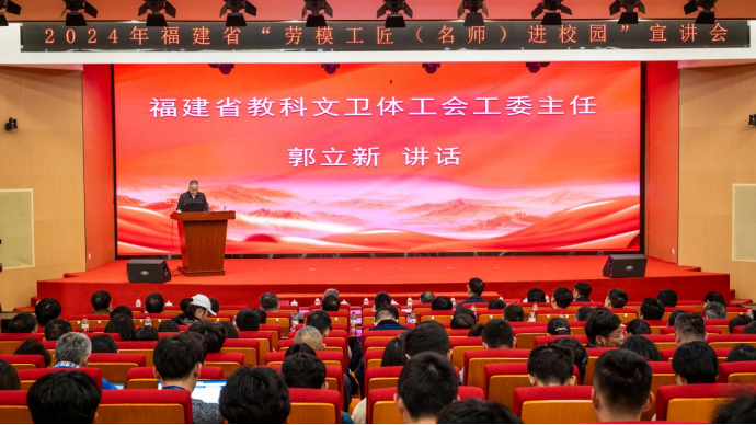 11月27日下午,主題為“勞動(dòng)光榮·聲動(dòng)校園”----2024 年福建省“勞模工匠(名師)進(jìn)校園”系列活動(dòng)---走進(jìn)福建船政交通職業(yè)學(xué)院的活動(dòng)在我院隆重舉行。本次活動(dòng)由福建省總工會(huì)主辦,福建教育學(xué)院和我院共同承辦。省教科文衛(wèi)體工會(huì)工委主任郭立新、省教科文衛(wèi)體工會(huì)工委二級(jí)調(diào)研員左修坤、福建教育學(xué)院宣傳部部長、工會(huì)常務(wù)副主席范光基,學(xué)院黨委書記陳宜大,黨委委員、紀(jì)委書記張輝,黨委委員、副院長陳艷紅出席了本次活動(dòng),近300名師生代表參加活動(dòng)。