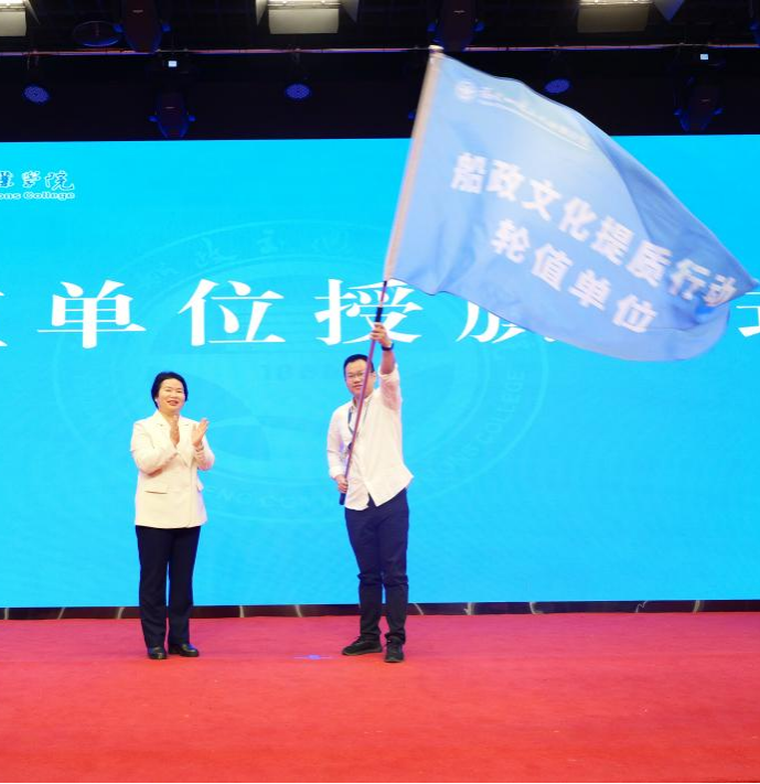 授旗儀式上,經(jīng)濟(jì)與管理學(xué)院接過輪值單位旗幟,鄭重承諾將凝聚師生力量,推動活動長效開展。