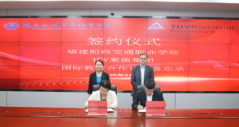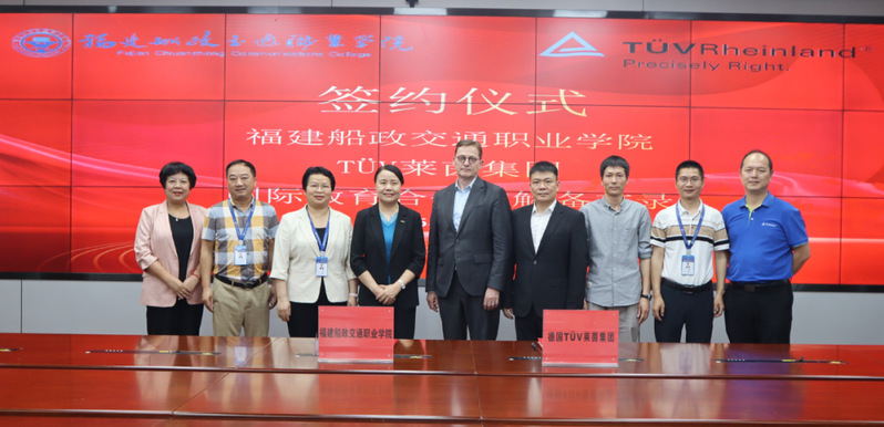5月9日,學(xué)院同德國TüV 萊茵集團在福船園行政樓會議室舉行國際教育合作諒解備忘錄簽約儀式。TüV萊茵集團全球職業(yè)教育總監(jiān)Carlo Humberg ,TüV 萊茵大中華區(qū)職業(yè)教育總經(jīng)理陳俊東,萊茵中檢(福建)技術(shù)有限公司副總經(jīng)理趙東岳、經(jīng)理孫代新,福建船政交通職業(yè)學(xué)院黨委副書記、院長陳群,黨委副書記張輝等校企領(lǐng)導(dǎo)出席活動。