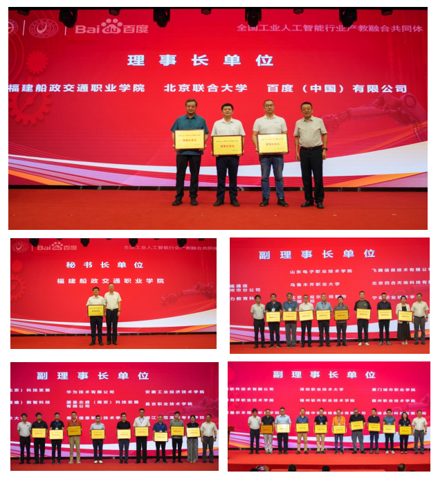 大會(huì)現(xiàn)場(chǎng)舉行了理事長(zhǎng)單位、副理事長(zhǎng)單位、常務(wù)理事單位及理事單位授牌儀式,百度(中國(guó))有限公司、北京聯(lián)合大學(xué)、福建船政交通職業(yè)學(xué)院榮膺理事長(zhǎng)單位,福建船政交通職業(yè)學(xué)院當(dāng)選秘書長(zhǎng)單位,并順利通過(guò)了《全國(guó)工業(yè)人工智能行業(yè)產(chǎn)教融合共同體章程》。