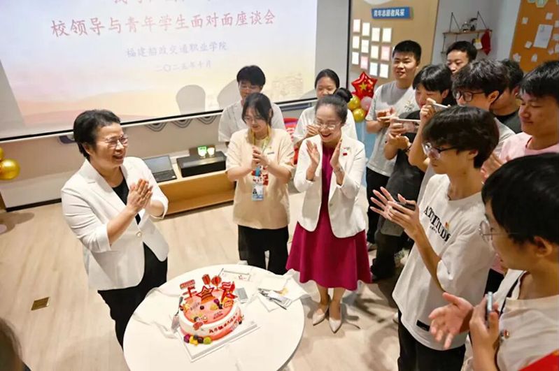在青年之家,同學(xué)們圍繞專業(yè)發(fā)展、擇業(yè)方向、個(gè)人規(guī)劃及校園生活等話題踴躍發(fā)言;學(xué)院黨委副書記張輝與學(xué)院團(tuán)委書記陳慧認(rèn)真傾聽,對(duì)同學(xué)們提出的困惑逐一進(jìn)行詳細(xì)解答并開展深入交流。座談會(huì)上,張輝副書記與師生們共同為新中國(guó)成立76周年慶生,師生們高聲祝?!白鎳?guó)生日快樂”,現(xiàn)場(chǎng)氣氛高漲,溫馨的一幕為座談會(huì)畫上了圓滿的句號(hào)。