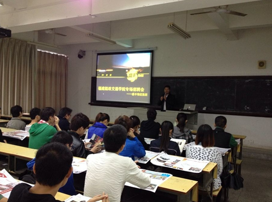 2014年4月23日在福建船政交通職業(yè)學(xué)院經(jīng)管大樓307教室為2014屆畢業(yè)生舉辦一場專場招聘會(huì),由盛豐物流股份有限公司前來對交通經(jīng)濟(jì)系2014屆各專業(yè)應(yīng)屆畢業(yè)生進(jìn)行招聘。