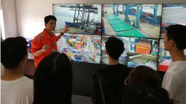 最后,同學(xué)們前往海盈碼頭的計(jì)劃科和中控室進(jìn)行參觀,了解碼頭作業(yè)計(jì)劃方面的知識(shí),同時(shí),對中控室的功能進(jìn)行學(xué)習(xí),同學(xué)們對監(jiān)控系統(tǒng)表現(xiàn)出濃厚的興趣,王助理也詳細(xì)為同學(xué)們講解了監(jiān)控系統(tǒng)的功能及應(yīng)用。