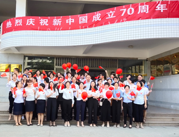 “我和我的祖國,一刻也不能分割,無論我走到哪里,都流出一首贊歌……”全體教師手持五星紅旗,同唱《我和我的祖國》,通過歌聲表達了他們對于新中國成立70周年的喜悅與自豪之情,唱出新時代工作者的忠誠與擔當。