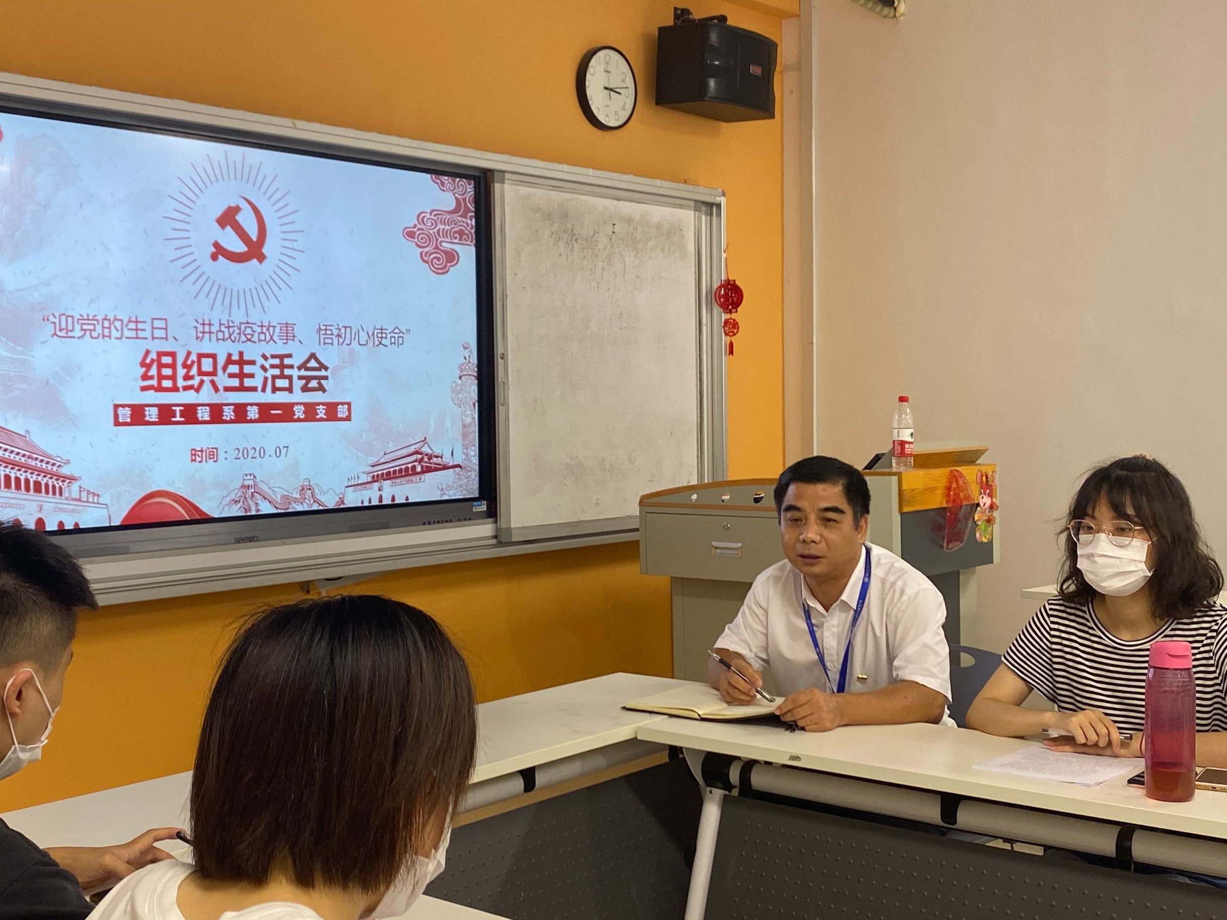 為慶祝中國(guó)共產(chǎn)黨成立99周年,重溫黨的光輝歷史,發(fā)揚(yáng)黨的光榮傳統(tǒng),充分發(fā)揮高?;鶎狱h組織戰(zhàn)斗堡壘作用和教工黨員的先鋒模范作用,管理工程系一支部于2020年7月7日,以“迎黨的生日、講戰(zhàn)疫故事、悟初心使命”為主題,在31#406開(kāi)展黨員專題組織生活會(huì)。支部書(shū)記湯曉玲主持會(huì)議。
