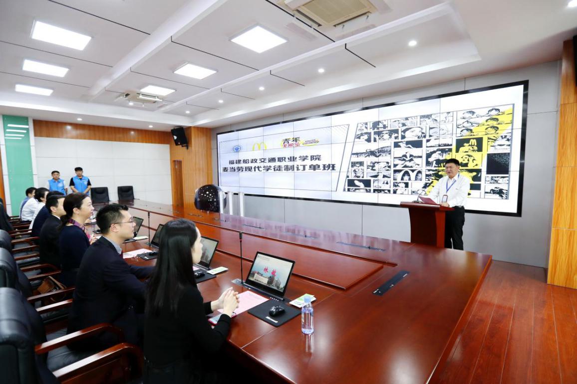 福建麥當(dāng)勞高級(jí)總經(jīng)理嚴(yán)平在儀式上致辭,他表示福建麥當(dāng)勞與福建船政交通職業(yè)學(xué)院的之間的合作已有6年時(shí)間,包括校園招聘、企業(yè)入校體驗(yàn)課程、麥苗訂單班等形式,校企雙方合作非常融洽。此次現(xiàn)代學(xué)徒制訂單班的成立,意味著雙方將會(huì)更進(jìn)一步加強(qiáng)校企資源共享,優(yōu)勢(shì)互補(bǔ),創(chuàng)新人才的培養(yǎng)模式,最終實(shí)現(xiàn)學(xué)校、企業(yè)、學(xué)生三方“共贏”的新局面。