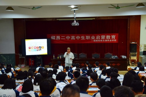 為深入貫徹落實(shí)《國(guó)家職業(yè)教育改革實(shí)施方案》,加強(qiáng)中小學(xué)生職業(yè)啟蒙教育,完成新時(shí)代賦予教育的歷史使命,充分發(fā)揮福建船政交通職業(yè)學(xué)院國(guó)家“雙高計(jì)劃”建設(shè)單位的優(yōu)勢(shì)、職業(yè)教育資源優(yōu)勢(shì)以及現(xiàn)代職教文化特色,11月2日,福建船政交通職業(yè)學(xué)院經(jīng)濟(jì)與管理學(xué)院副院長(zhǎng)林穎、市場(chǎng)營(yíng)銷教研室主任陳華、電子商務(wù)教研室主任陳樂天、市場(chǎng)營(yíng)銷專業(yè)教師湯曉玲一行赴南平市順昌二中開展職業(yè)啟蒙教育活動(dòng),并為同學(xué)們帶來了豐富的宣傳物資及學(xué)院精美的文創(chuàng)禮品。