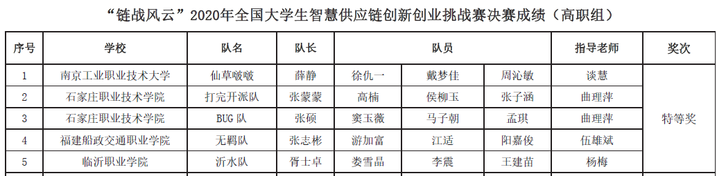11月28日,2020年“鏈戰(zhàn)風(fēng)云”全國(guó)大學(xué)生智慧供應(yīng)鏈創(chuàng)新創(chuàng)業(yè)挑戰(zhàn)賽總決賽圓滿結(jié)束。大賽由中國(guó)商業(yè)經(jīng)濟(jì)學(xué)會(huì)主辦,采取網(wǎng)絡(luò)競(jìng)賽的方式進(jìn)行。本屆大賽共有來自全國(guó)28個(gè)省市、自治區(qū)、直轄市446所院校820支隊(duì)伍報(bào)名參賽,其中本科組合計(jì)290所院校595支隊(duì)伍、高職組合計(jì)156所院校225支隊(duì)伍。經(jīng)初賽選拔出的高職組和本科組各50支隊(duì)伍進(jìn)入全國(guó)總決賽。