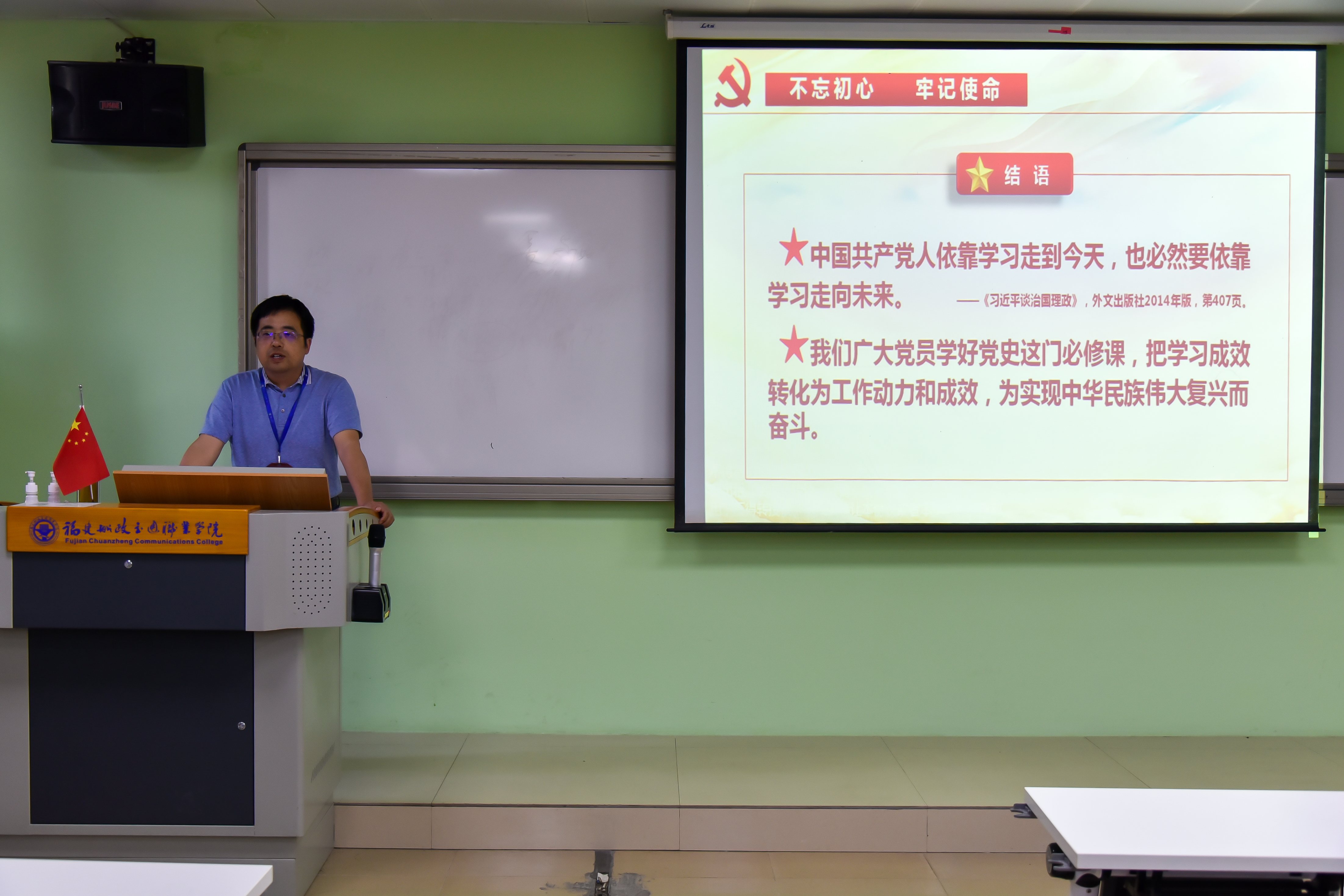 為深入學(xué)習(xí)貫徹習(xí)近平總書記在黨史學(xué)習(xí)教育動員大會上的重要講話精神,推進學(xué)院黨史學(xué)習(xí)教育和“再學(xué)習(xí)、再調(diào)研、再落實”活動深入開展,6月18日下午,經(jīng)濟與管理學(xué)院院長房曰榮在學(xué)院南區(qū)31號樓407教室作題為《學(xué)習(xí)黨史 激發(fā)信心動力 踐行初心使命》黨史學(xué)習(xí)教育專題黨課。經(jīng)濟與管理學(xué)院第三黨支部全體黨員和部分學(xué)生代表參加了此次黨課。