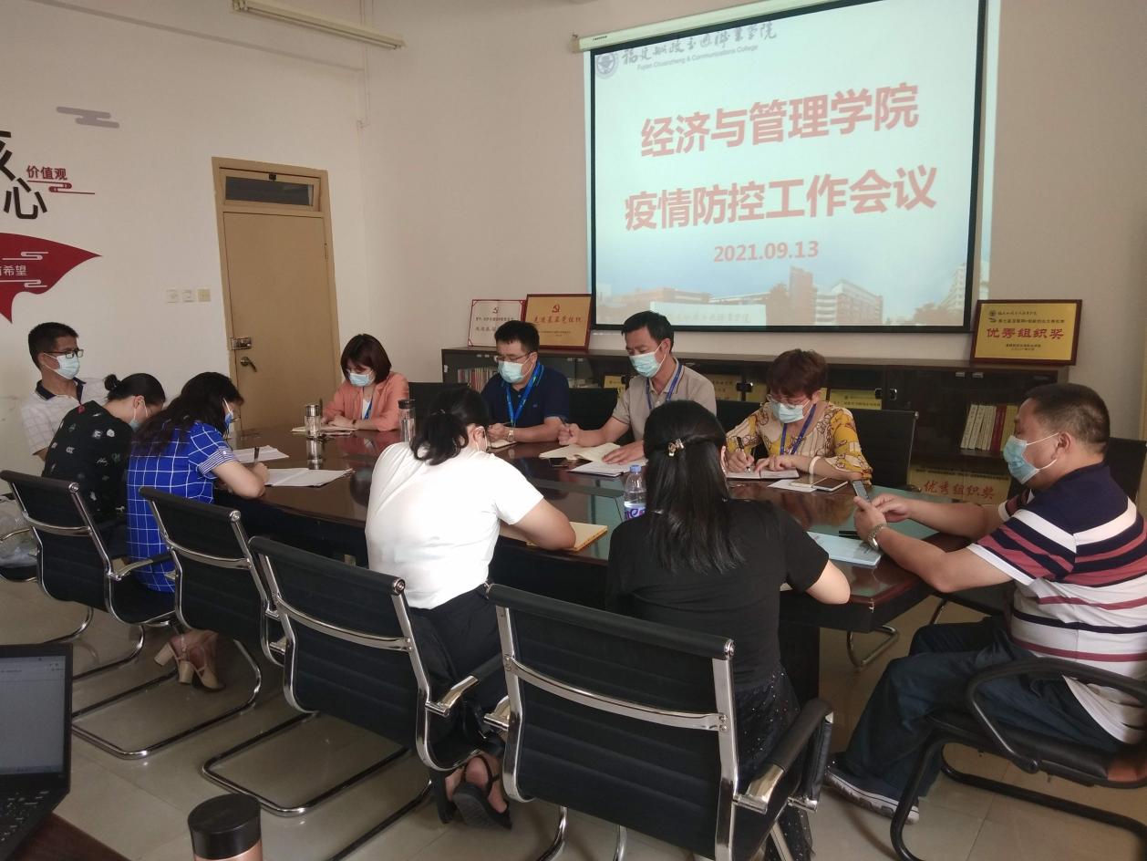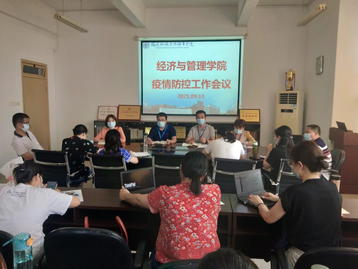 9月13日下午,經(jīng)濟(jì)與管理學(xué)院召開疫情防控工作會(huì)議,傳達(dá)了全省教育系統(tǒng)疫情防控視頻工作會(huì)議的精神指示,并部署我院相關(guān)工作。房曰榮院長(zhǎng)主持會(huì)議,學(xué)院領(lǐng)導(dǎo)、各教研室主任、實(shí)訓(xùn)中心主任、辦公室主任、團(tuán)委書記、全體輔導(dǎo)員、支部書記副書記出席會(huì)議。