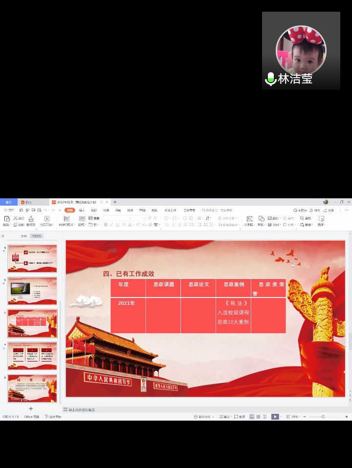 首先,營(yíng)銷、電商、物流、會(huì)計(jì)、關(guān)務(wù)教研室主任分別匯報(bào)了2021年各教研室在課程思政建設(shè)方面所取得的成效以及2022年課程思政建設(shè)的工作計(jì)劃。
